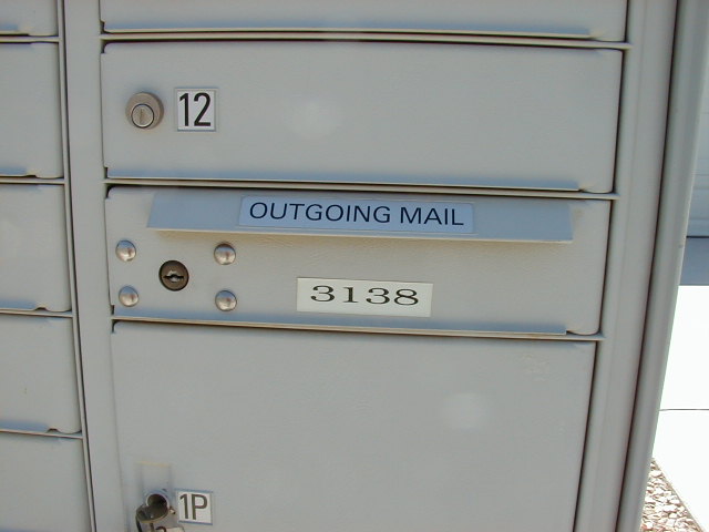 日本では、学校に行く途中、出勤途中、買い物の途中などに、近所の郵便ポストを見つけて投函するのですが、つい忘れて一日中持ち歩いて、とうとう家に再び持ち帰ってしまうこともあります。アメリカでは、手紙に切手を貼ったとたんに自宅の郵便受けにいれて、赤い旗を上げておくだけで良いのです。この山型パンの形をした赤い旗付きの郵便ポストは郊外の住宅街に良く見られます。もう少し住宅が密集していて、土地を分譲した開発会社が入り口にゲートを設けているようなコミュニティ式分譲住宅地などになると、10−12軒くらいの郵便ポストをまとめて集合郵便ポストにして設置する場合があります。そのような場合にも、この集合郵便受けには郵便を投函する窓口が付いていますので、配達と同時に郵便を回収してくれるサービスに変わりはありません。