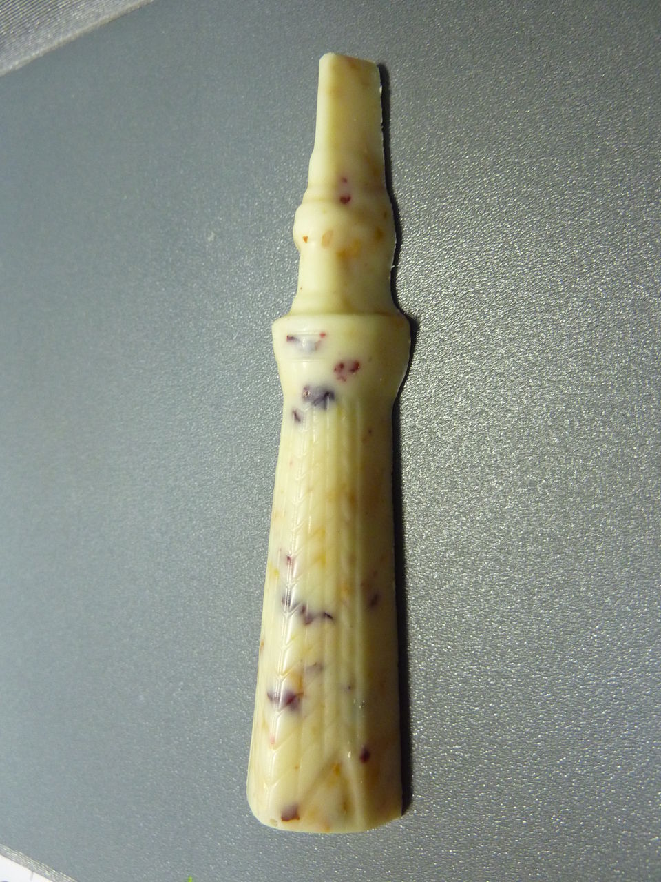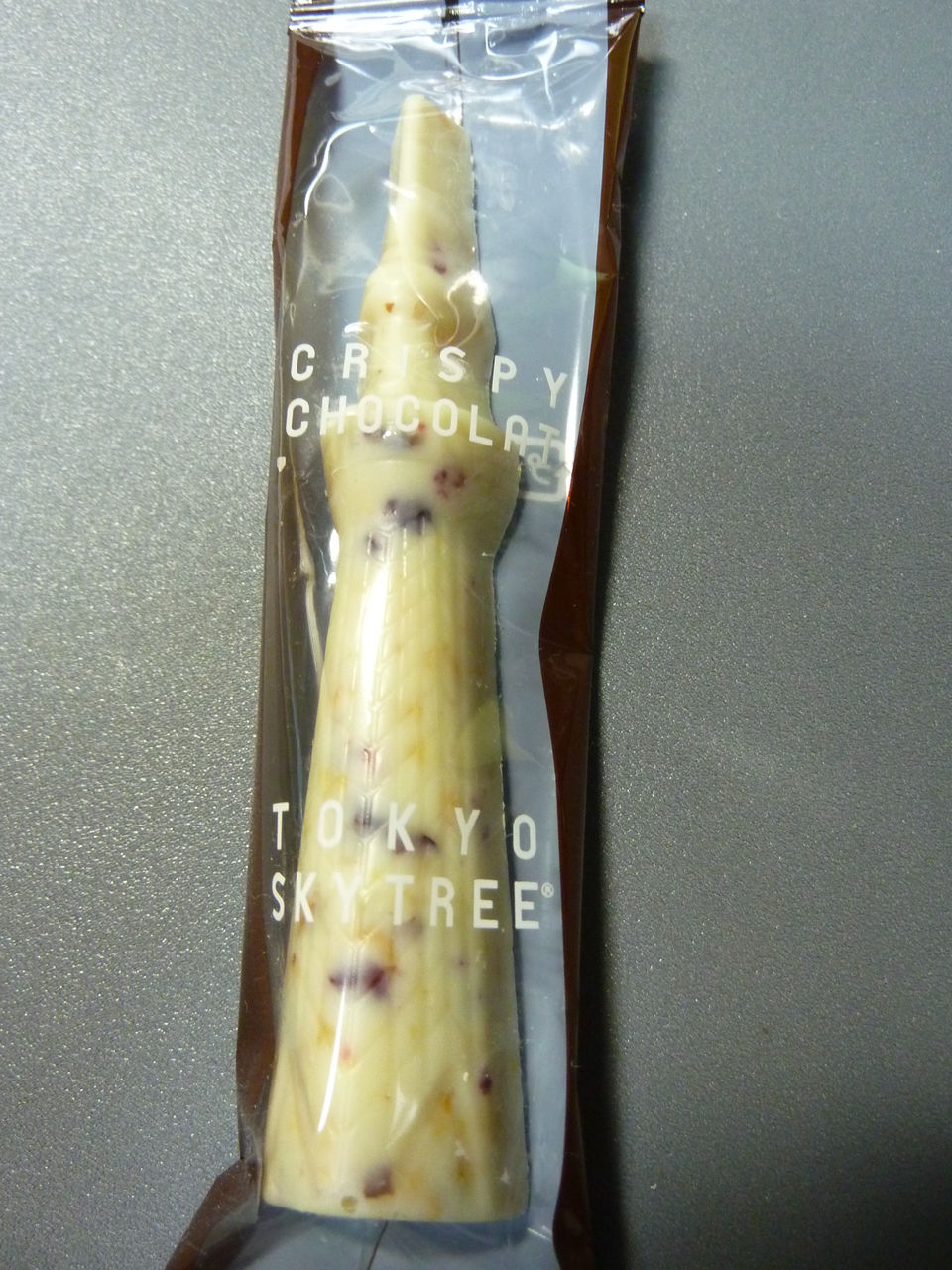 実際にスカイツリーの形になったホワイトチョコで、大きさがちょうど本物のスカイツリーの6600分の1になっている。モロゾフさんが出しているので味は申し分なく美味しい。