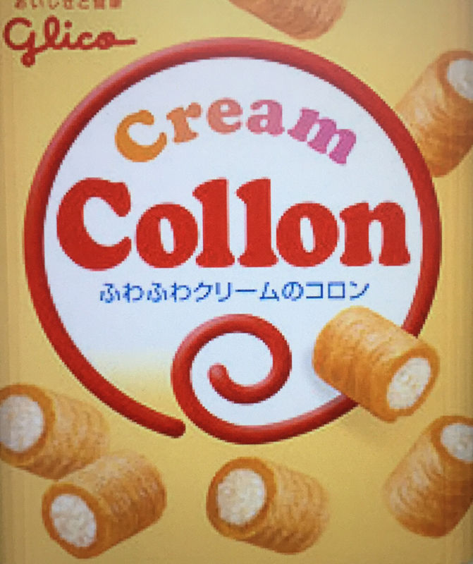 グリコの「コロン」です。あの円柱形のコロコロしたお菓子にはぴったりのカワイイ名前だと思います。ところがこの「コロン」と言う音を英語圏の人が聞くと「結腸」という意味の言葉を思い浮かべてしまうようです。更にあの形が腸を輪切りにしていった感じを受けるようで、「えっ?」という反応になってしまいます。