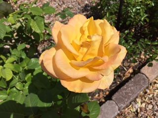 さて、その名前の付け方が興味深く、アメリカでは人の名前を付けることが多いのです。バラに関してお話すると、園芸の店に行ってバラのコーナーを見ると有名な俳優さんの名前がずらりと並んでいます。ヘンリー・フォンダとかエリザベス・テーラーなど皆が知っている名前です。ちなみに、写真の黄色いバラの名前はヘンリー・フォンダです。