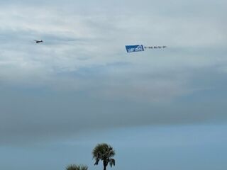 広告には様々な方法があります。TVやラジオのコマーシャル、チラシ、アドバルーン、旗、日本の伝統的な方法としては「チンドン屋さん」なんて方法もありますね。アメリカは広大な土地がありますから、ビルボードと呼ばれる巨大な広告塔が高速道路の脇に掲げられる、という方法は決して珍しくはありません。しかし、その上を行く方法が小型飛行機を使って空を飛んで、飛行機の後ろに広告メッセージを付けて空を飛び回る、という方法です。