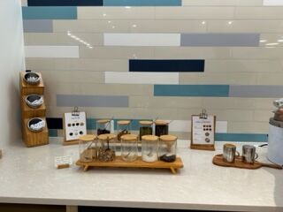 大きな保温用の入れ物にプレーンのオートミールが入っています。それを器に自分で取って、様々なトッピングを乗せていきます。アメリカの定番は甘くすることです。先ずは粉砂糖や黒砂糖です。次はナッツ類とドライフルーツ類です。写真にあるのは10種類のトッピングです。クルミ、アーモンド、パンプキンシード、ココナッツフレーク、ドライクランベリー、干しブドウ、シナモンパウダー、などなど。色々入れれば毎日違う味が楽しめますね。勿論、生のフルーツをいれるのもお勧めです。