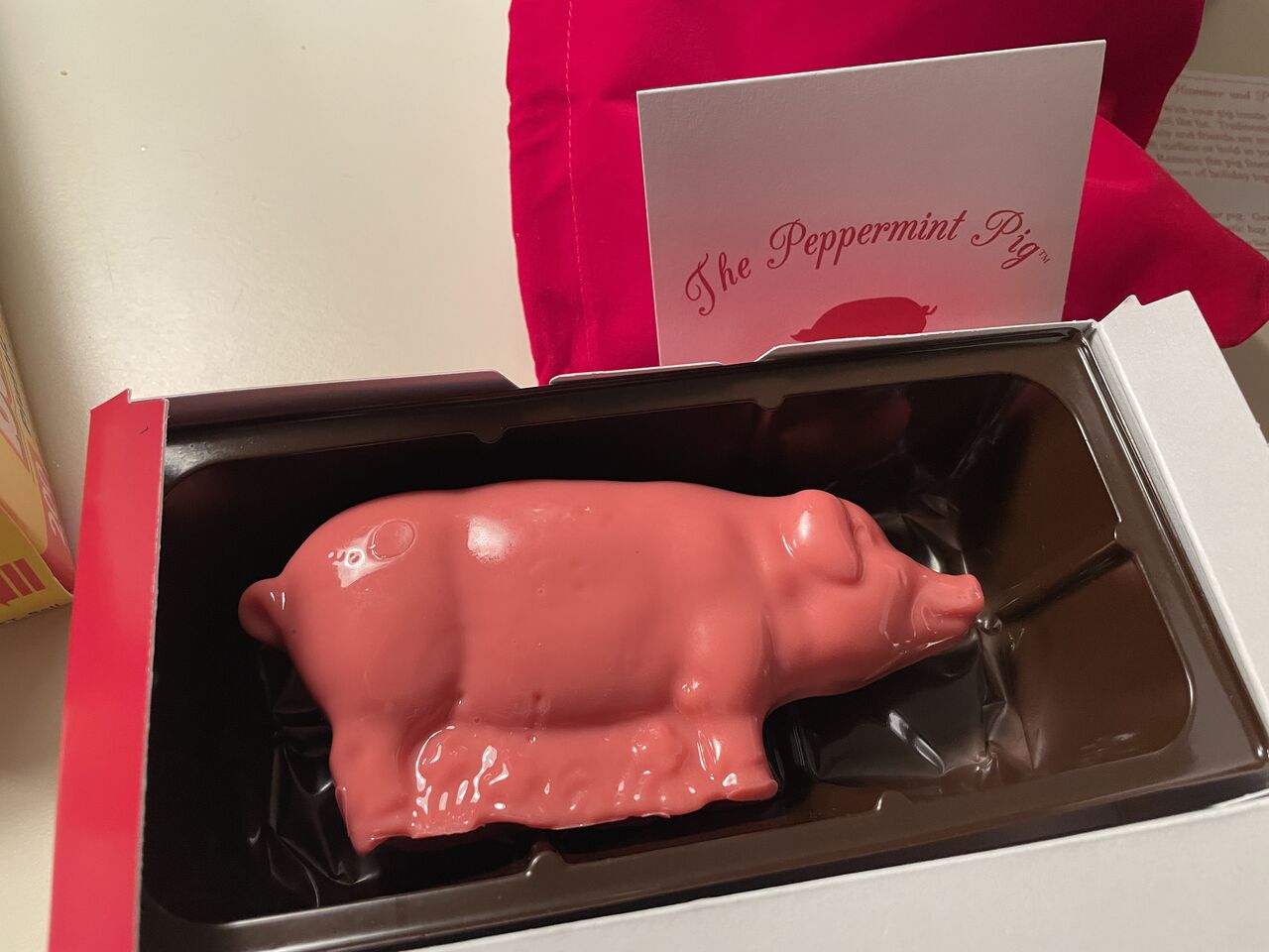 私の現在住んでいるアメリカのコネチカット州の友人は、感謝祭からクリスマスのホリデーシーズンには家族が集まった時に、ピンク色のペパーミントで出来た豚の形のキャンデーをベルベットで出来た袋に入れて付属のハンマーで割る、という「しきたり」を続けています。これはNY州のSaratoga Springs地方に伝わる伝統で、歴史的にはビクトリア時代にまでさかのぼるとも言われています。ピンク色のペパーミントの豚は「健康、幸せ、繁栄」を象徴しているのだそうです。