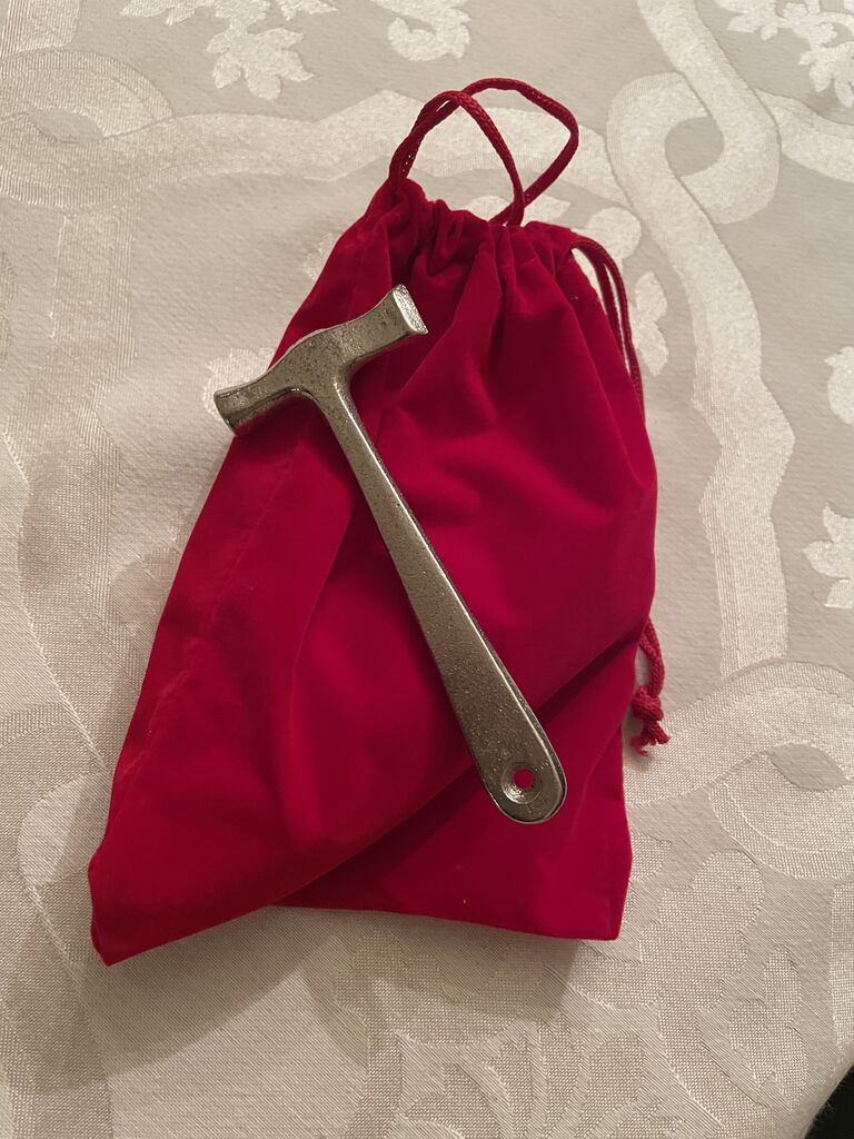 元々は年末に行われているしきたりのようですが、友人宅では感謝祭の食卓で、デザートが終わった後に家族や友人がテーブルと囲んで、それぞれが「私はxxxxに感謝しています」と一年を振り返って感謝を述べて、次々に回して行き、金属のハンマーで袋の中のピンクの豚を割ります。その儀式が一周したところで、粉々になったピンクのペパーミントの豚を器に出して、みんなでそれを分かち合います。感謝を述べる内容は皆それぞれですが、「私は健康に感謝します」とか「私は妻と子供たちに感謝します」「私は音楽に感謝します」「私はアップルパイに感謝します」などなど、なんでも良いのです。