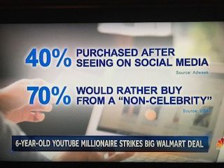 そんな中で、6歳の子供がYouTubeでオモチャの使い心地、どんなオモチャが面白いかを発信していて、子供ならではの意見が大変貴重だと評価されました。6歳にして年間1100万ドルも稼ぐことになった彼は、アメリカの大手スーパーであるウオルマートと契約を結ぶこととなりました。