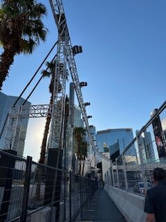 2023年初めて行ったところ、大成功をおさめたので、2024年も行う、しかも向こう10年間行われるということで、今年のレースは2024年11月21日から23日までが予定されています。今はその準備であちこちが工事だらけで、あの有名なベラージオの噴水も見えなくなる大きな観覧席が建設中です。また、コースに指定されている道路には、夜間レースなので照明が施され、フェンスで囲んでいます。